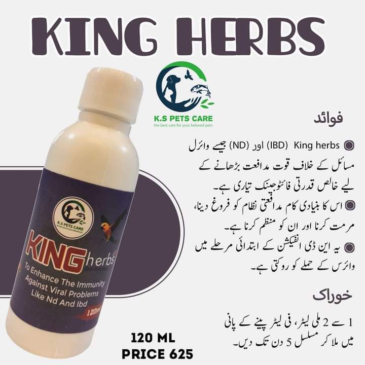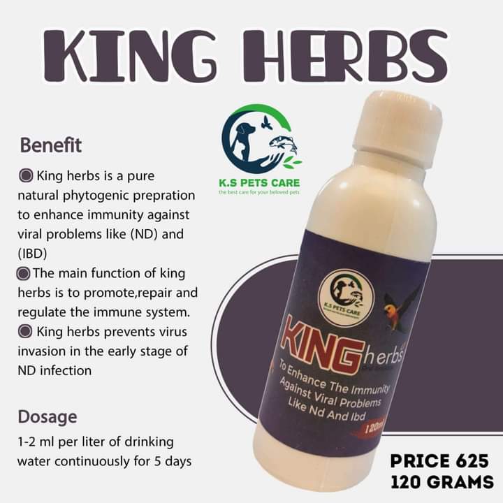 King Herb is a pure natural phytogenic preparation to enhance immunity against viral problems like Newcastle Disease (ND) and Infectious Bronchitis Disease (IBD). It is a natural remedy that can help to improve the immune system and reduce the risk of infection. The main function of King Herb is to promote repair and regulate the immune system. King Herb prevents virus invasion in the early stages of ND infection.