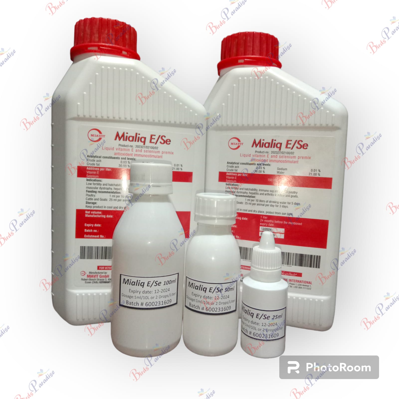Mialiq E/Se is safe for all types of birds, including parrots, finches, canaries, and budgies. It can be added to food or water.