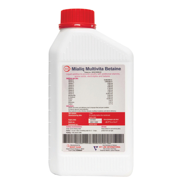 Liquid additive to provide birds with additional vitamins, amino acids, electrolytes & betaine. Betaine is a naturally occurring substance that is found in many plants and animals. It is essential for the growth and development of birds. Betaine also helps to improve the absorption of nutrients and to reduce the risk of dehydration.