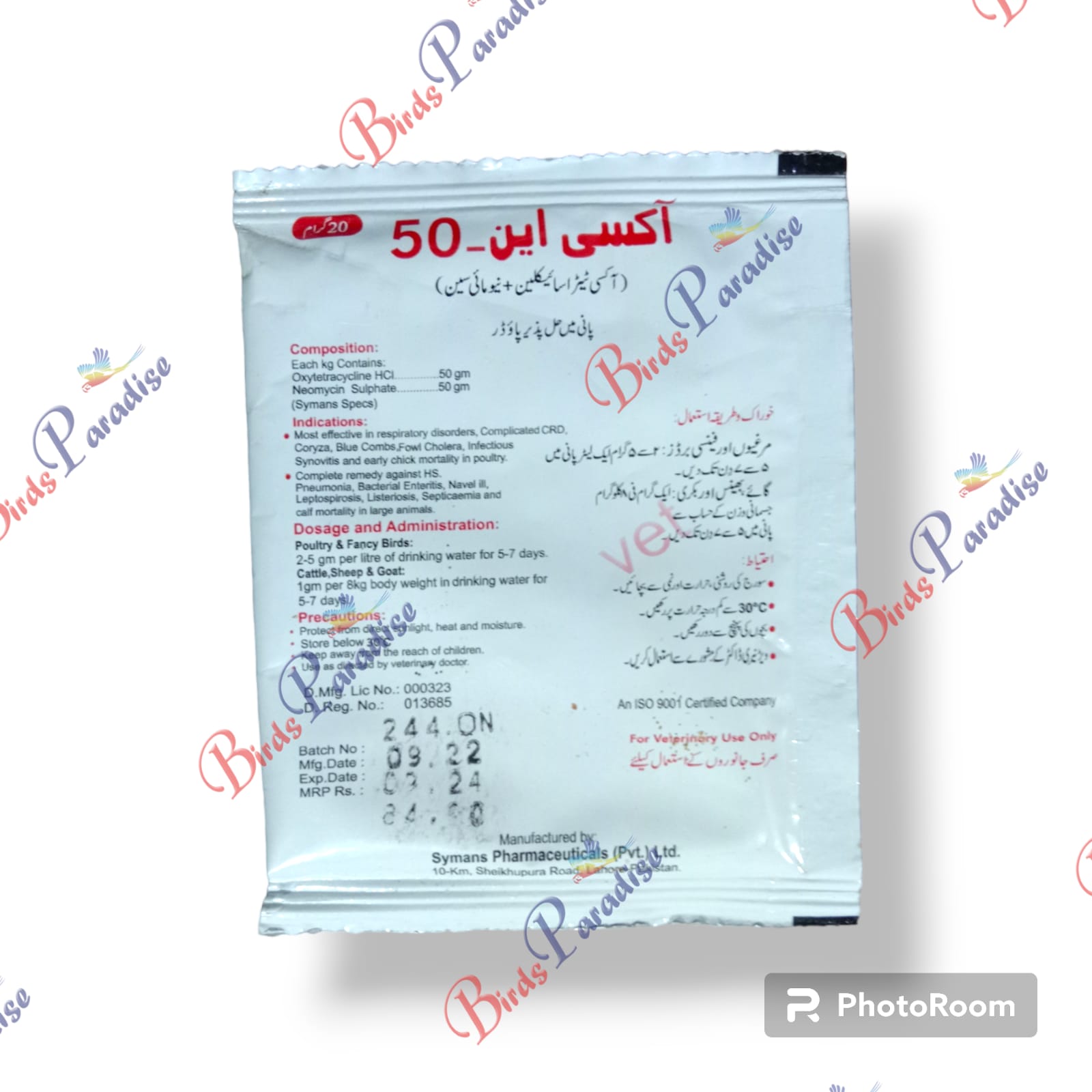 Oxy-N 50, a broad-spectrum antibiotic and anti-inflammatory drug for birds. It is used to treat a variety of bacterial infections, including respiratory infections, wound infections, and enteritis.